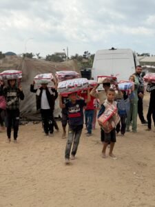 المساعدات العينية: توزيع الطعام، الماء، والملابس.