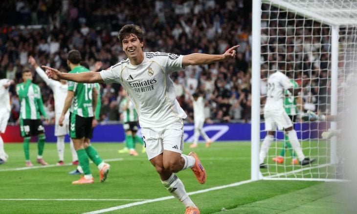 أحرز المهاجم غونزالو غارسيا ثلاثية ?قاد بها ريال مدريد للفوز 5-1 على ضيفه ريال بيتيس اليوم الأحد، ليقلص الفارق مع برشلونة متصدر دوري الدرجة الأولى الإسباني لكرة القدم إلى أربع نقاط.
