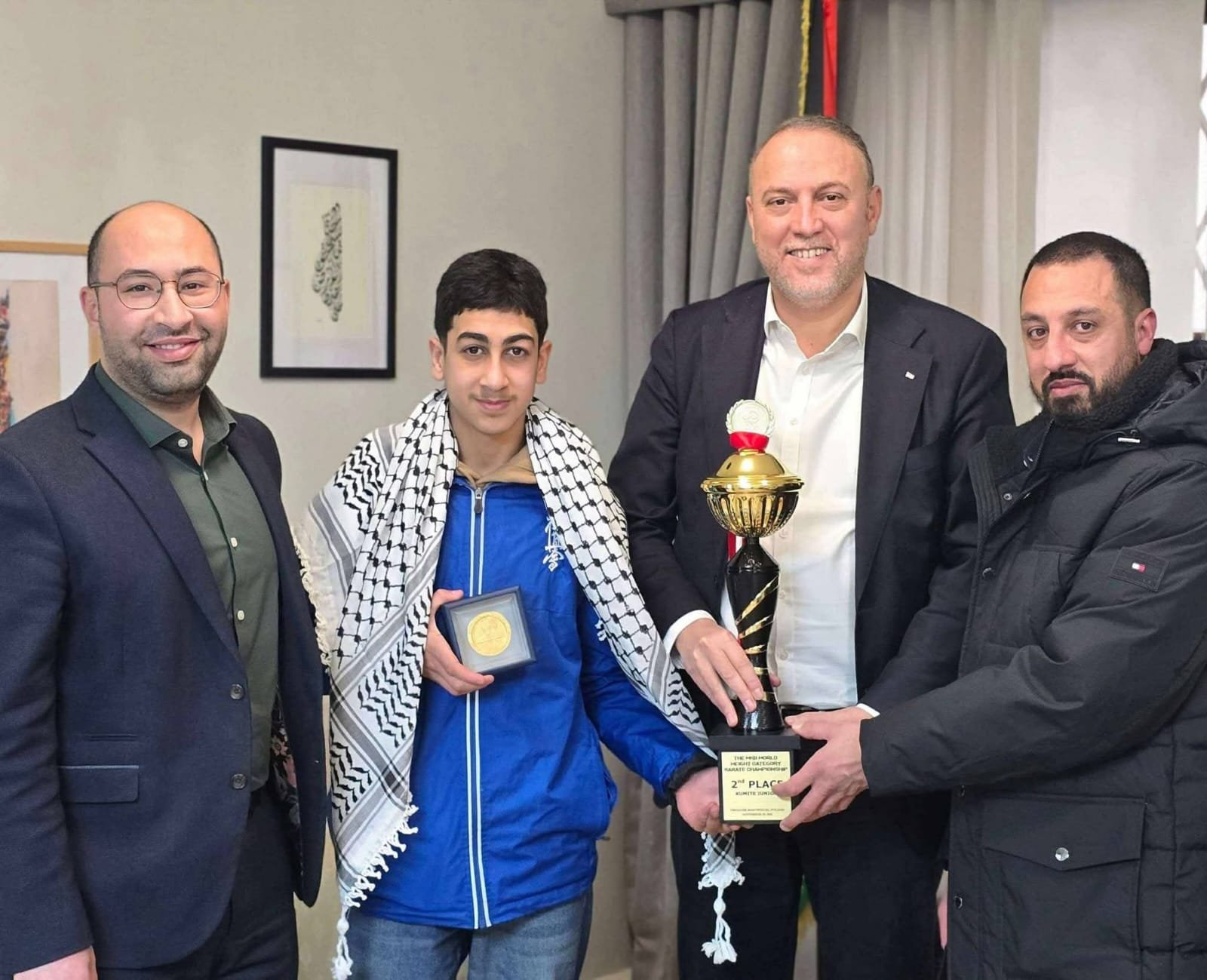 السفير الفلسطيني في بريطانيا د. حسام زملط يكرّم بطل الكاراتيه الفلسطيني الشبل عمر ربيع العينة