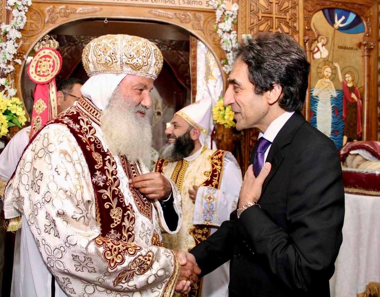 حضر بسام راضي سفير مصر في إيطاليا واعضاء السفارة المصرية ليلة امس قداس عيد القيامة بالكنيسة القبطية بروما حيث نقل تهنئة السيد الرئيس السيسي للجالية القبطية بإيطاليا ولنيافة الانبا برنابة أسقف روما وتورينو وفلورنسا وضواحيها، حيث تلى بسام راضي نص رسالة الرئيس :