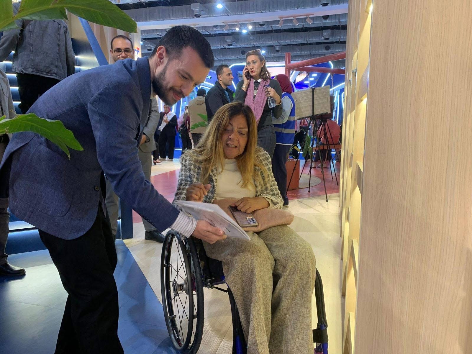 كما أشادت بالدور الإنساني الذي يقوم به المتطوعون، مستشهدة بموقف أحد المتطوعين الذي حرص على مرافقة سيدة من ذوي الإعاقة الحركية وتقديم الدعم الكامل لها طوال اليوم داخل جولتها بالمعرض، مؤكدة أن هذه النماذج المشرفة تجسد المعنى الحقيقي للإتاحة والدعم المجتمعي، كما أشادت بدور مترجمي لغة الإشارة من فريق عمل المجلس والمتطوعين من مختلف المحافظات الذي ساهم وجودهم في تعزيز وصول رسائل الندوات والفعاليات داخل معرض الكتاب للأشخاص من ذوي الإعاقات السمعية.