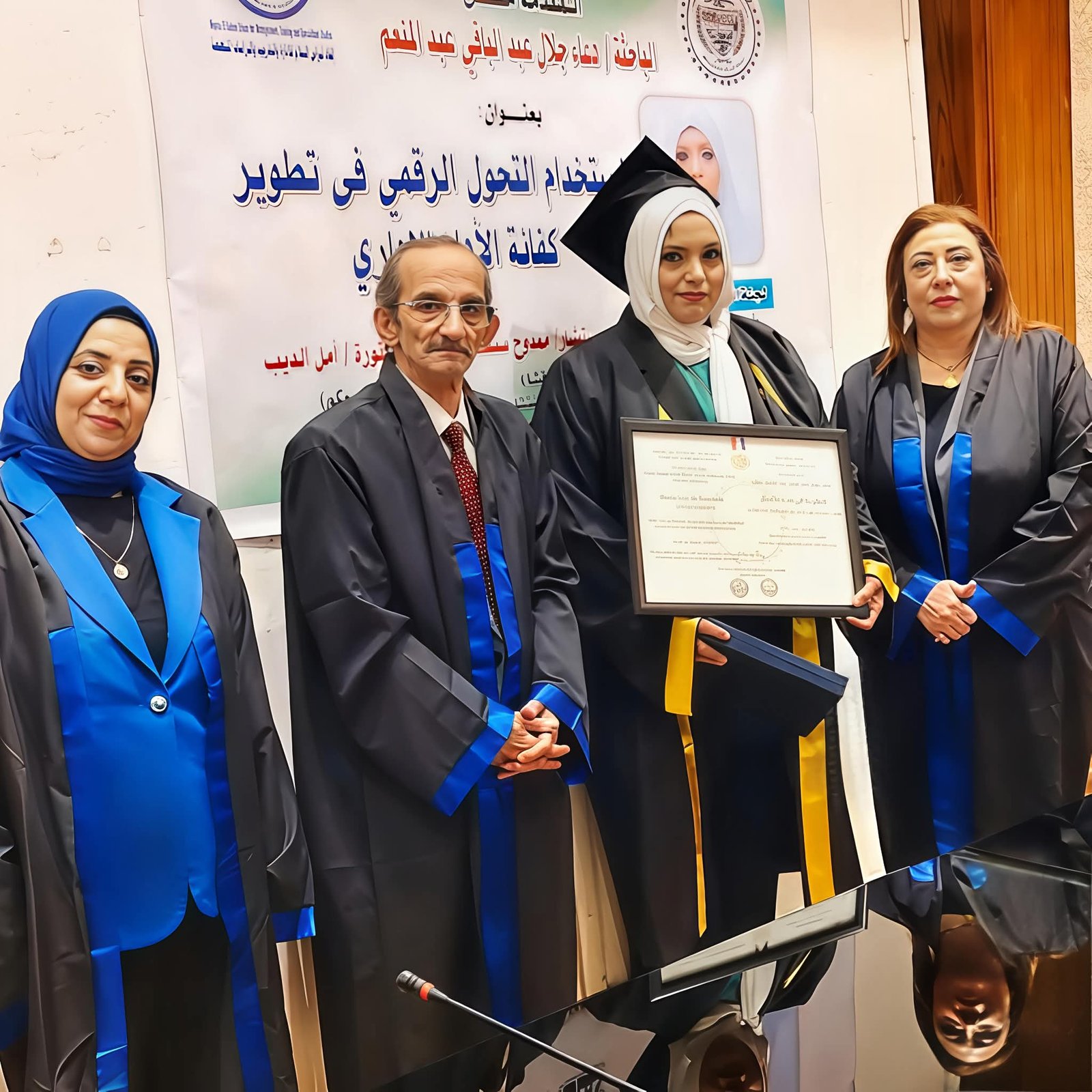 كما ناقشت اللجنة رسالة الباحثة دعاء جلال عبد الباقي عبد المنعم بعنوان: “استخدام التحول الرقمي في تطوير كفاءة الأداء الإداري”، والتي ركزت على الدور الحيوي للتكنولوجيا في رفع مستوى الكفاءة والحوكمة داخل المؤسسات، وأهمية اعتماد أدوات رقمية مبتكرة لتحسين جودة العمل وتسريع إنجاز المهام.