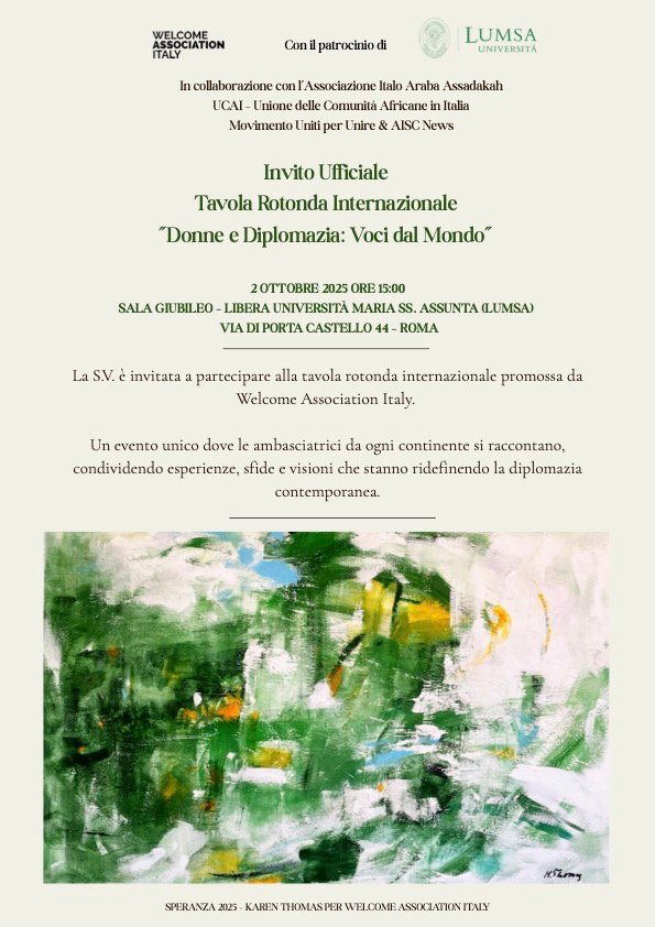 ROMA, 25 SETTEMBRE 2025 – Il prossimo 2 ottobre si terrà a Roma, presso la Libera Università Maria SS. Assunta (LUMSA), la Tavola Rotonda Internazionale “Donne e Diplomazia: Voci dal Mondo”.