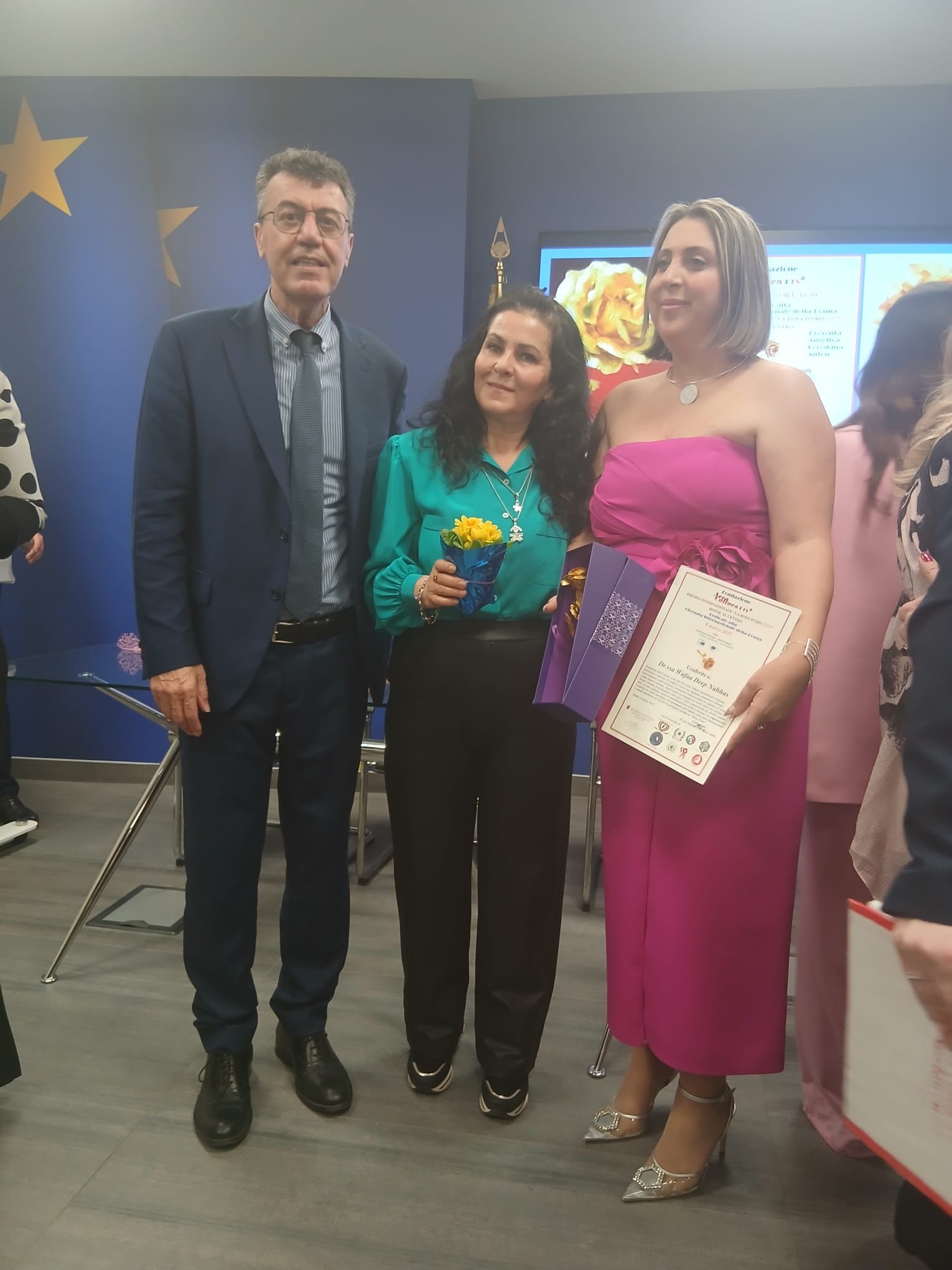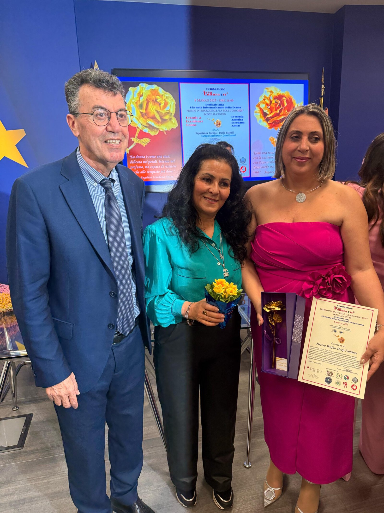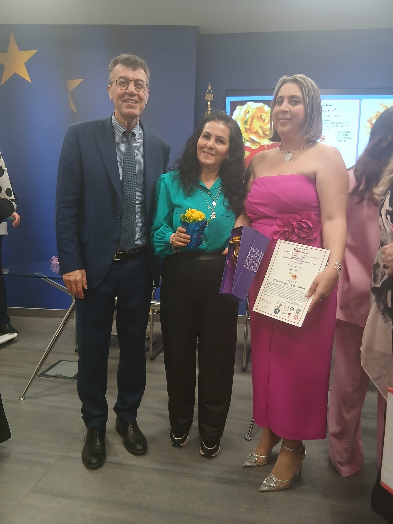 Titolare del Premio è la Fondazione Area Cultura, presieduta dalla Dr.ssa Angelica Loredana Anton, da sempre impegnata nella valorizzazione del mondo femminile, affinché la donna conquisti sempre più gli spazi che merita nella società, esaltandone il valore e l’impegno. Sono stati premiati Wafaa Nahhas, Presidente dell’Unione Arabi del 48, e Sabrina Valetta del Movimento Uniti per Unire. Inoltre, è stato apprezzato il Dipartimento Donne Co-MAI e sono stati consegnati i fiori alla coordinatrice Leila Belaitouche.